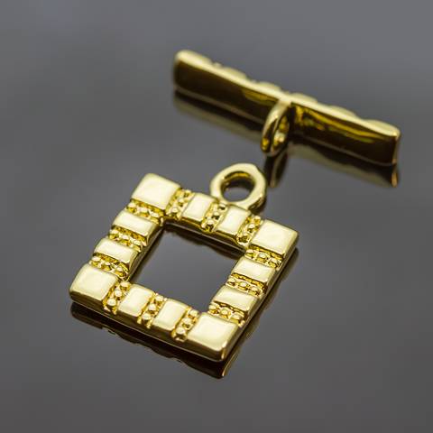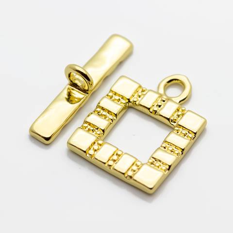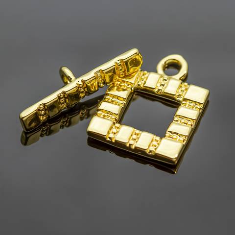 Замок тогл Квадратный 17 мм с тиснением позолота