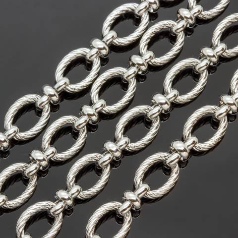 Выполнена в виде крупных овальных звеньев соединенных миниатюрными колечками-перемычками.