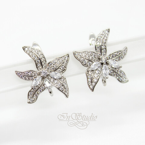Швензы Лилия родий с фианитами