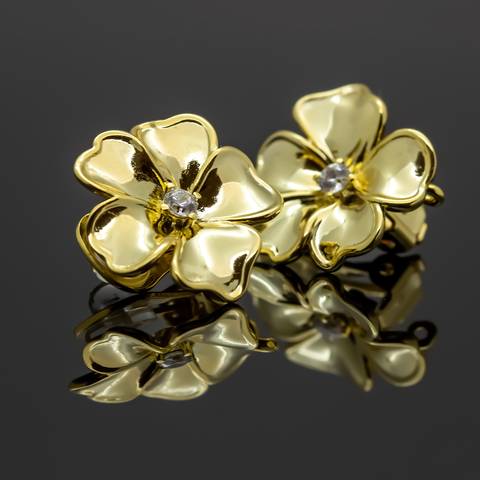 Выполнены в виде эффектного цветочка, в центр которого инкрустирован фианит.