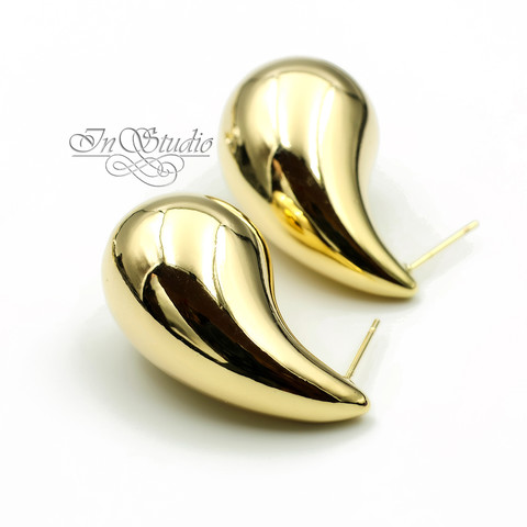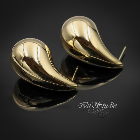 Серьги пусеты гвоздики крупная КАПЛЯ 32х17 мм.