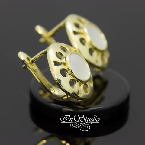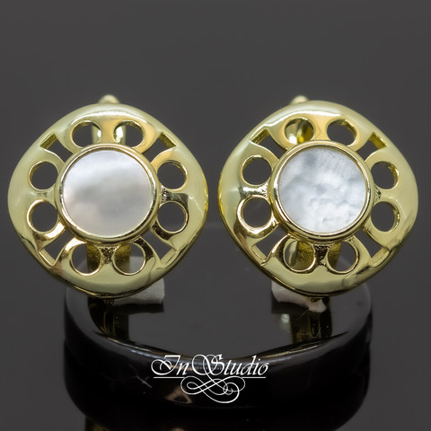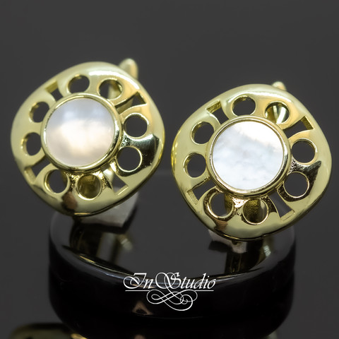 Швензы для серег ДЕВОН с перламутровой вставкой позолоченное покрытие. Английский замок.