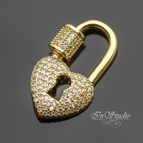 Застежка выполнена в виде замка инкрустированного фианитами.