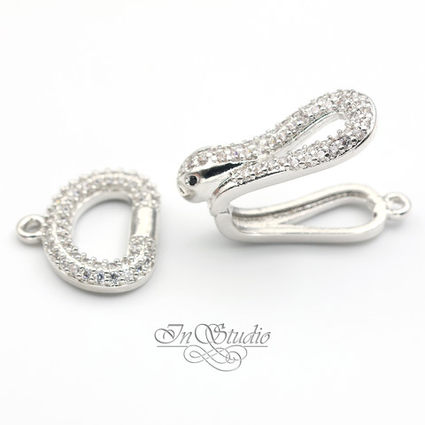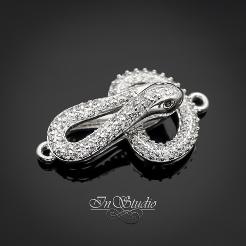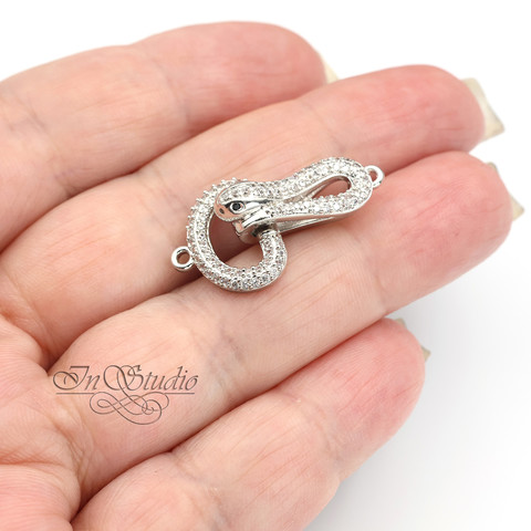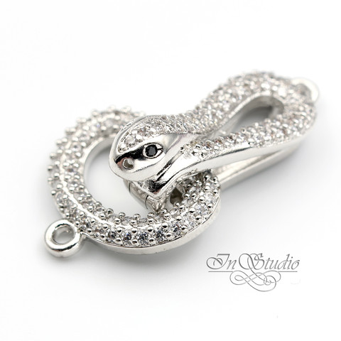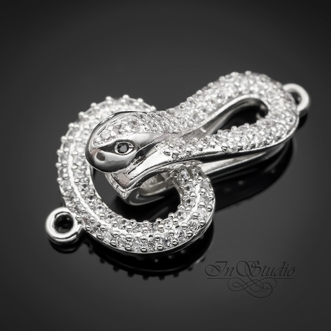 Замочек ЗМЕЯ для бус, колье, браслетов - инкрустированный фианитами (цирконами).