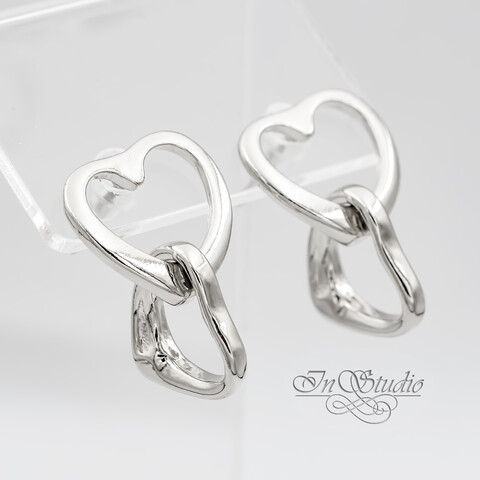 Швензы пусеты гвоздики Два Сердца для изготовления сережек.
