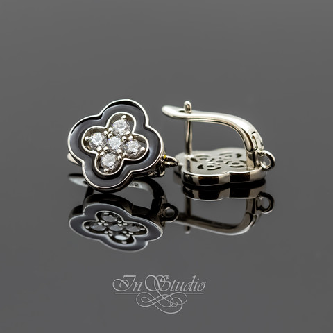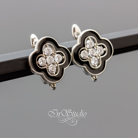 Швензы с фианитами ЮНОНА родий черная эмаль