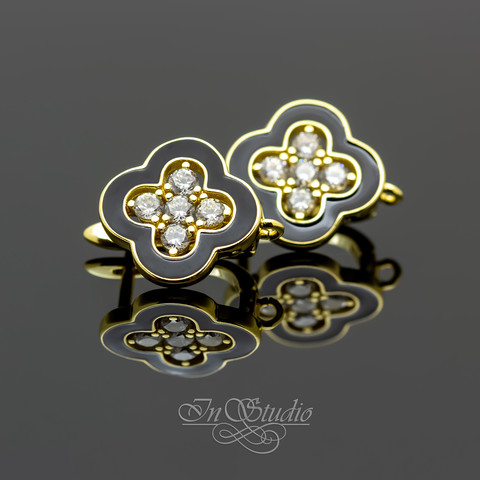 Инкрустированы фианитами и декорированы черной эмалью.