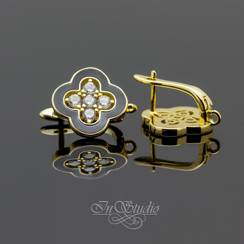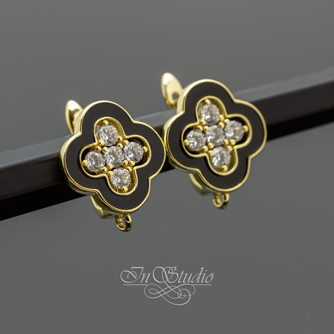 Швензы с фианитами ЮНОНА позолота черная эмаль