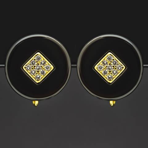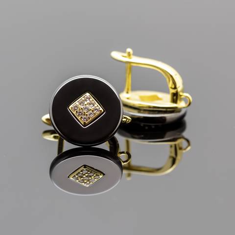 Швензы с фианитами ЭЛЬВИНА позолота черная керамика
