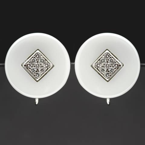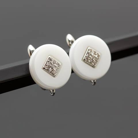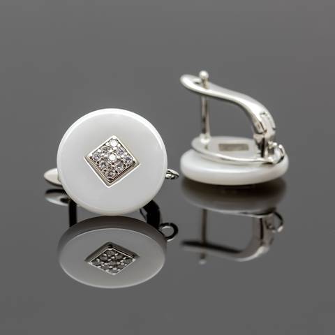 Швензы с фианитами ЭЛЬВИНА родий белая керамика