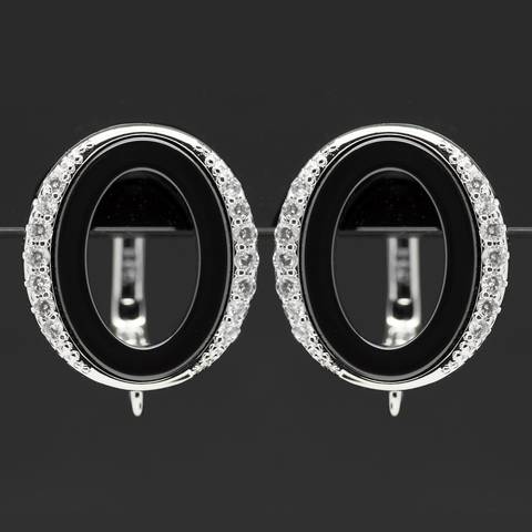 Швензы с фианитами ХИЛАРИ родий черная керамика