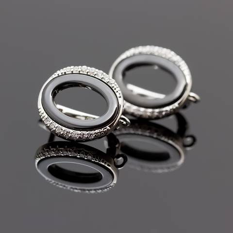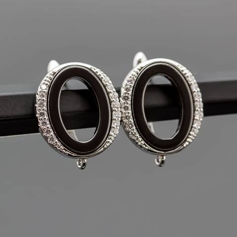 Выполнены в форме черного овального кольца с эффектным блестящим краем украшенным камнями.