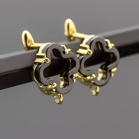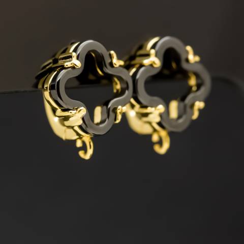 Швензы ШЕЙЛА клевер позолота черная керамика