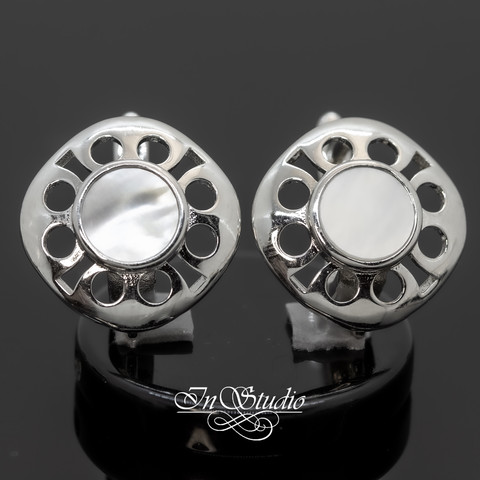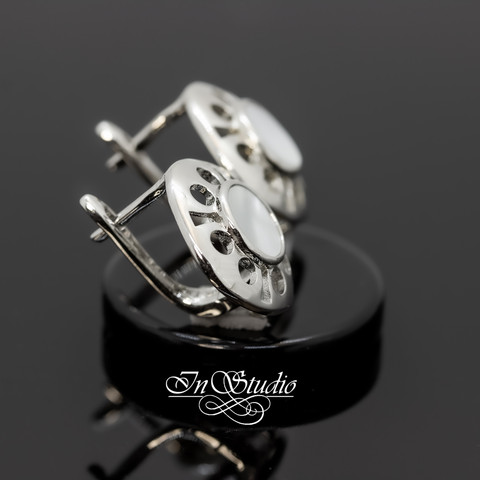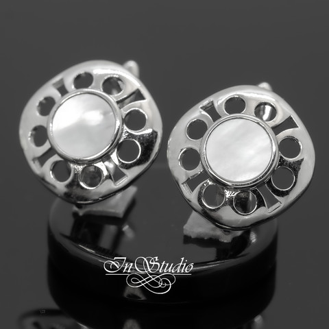 Швензы для серег ДЕВОН с перламутровой вставкой родиевое покрытие. Английский замок.