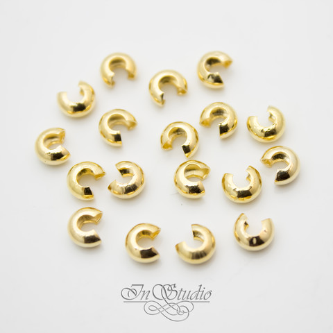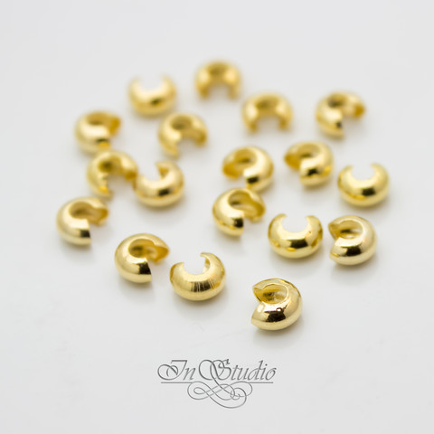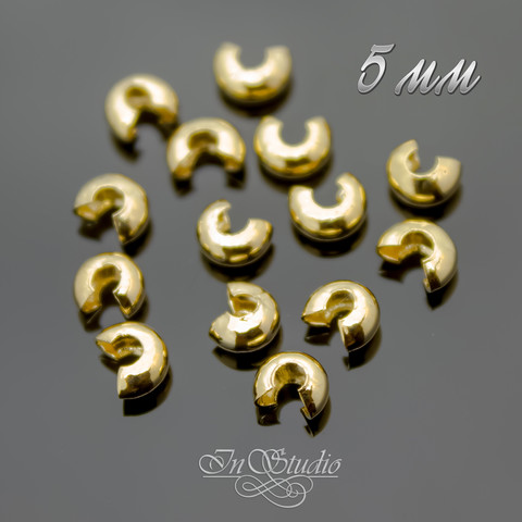 Обжимные бусины гладкие 5 мм покрытые позолотой
