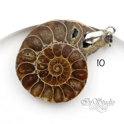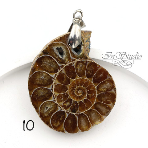 Аммонит натуральный 37х32 мм бусина окаменелость для украшений № 10