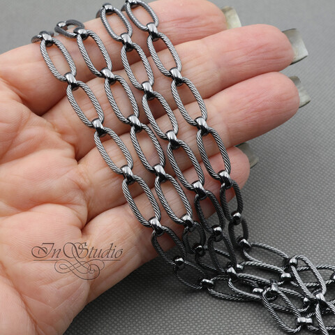 Цепочка AVITAL фактурная. Родиевое покрытие с чернением - черный родий. Цвет Gunmetal.
