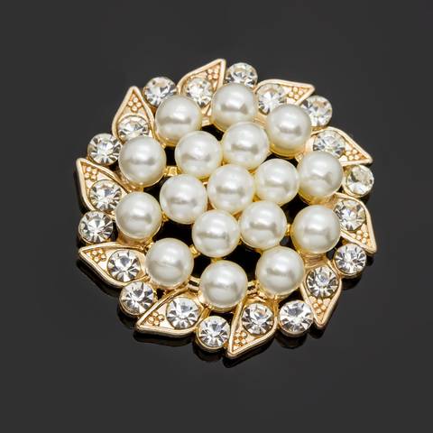 Инкрустирован жемчугом и вставками со стразами.