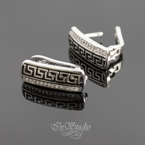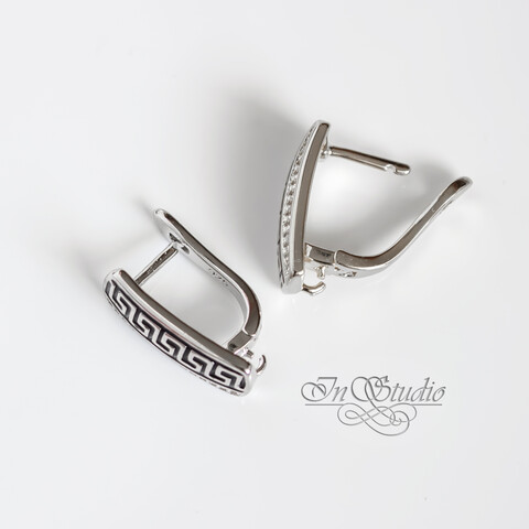 Инкрустированы фианитами и декорированы черной эмалью.