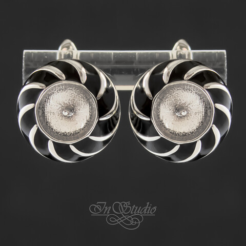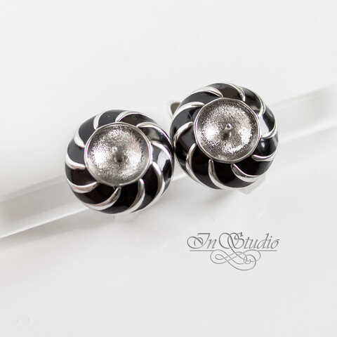 Швензы под вклейку АСТРИД родий черная эмаль
