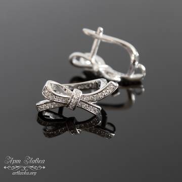 Швензы для серег Бантики родий с фианитами