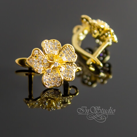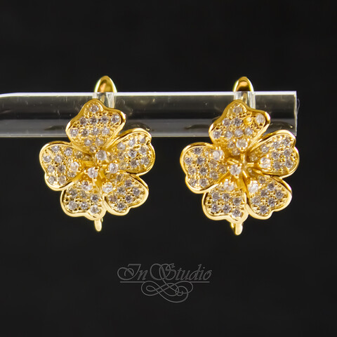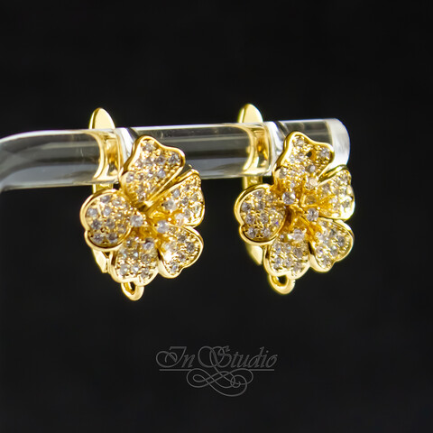 Швензы цветок ФЛО 13 мм позолота с фианитами