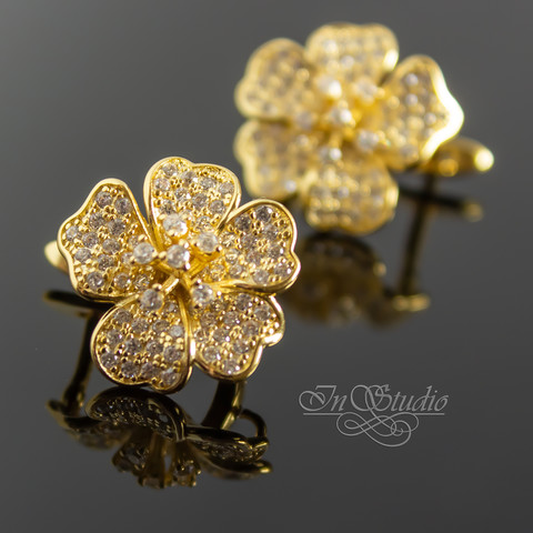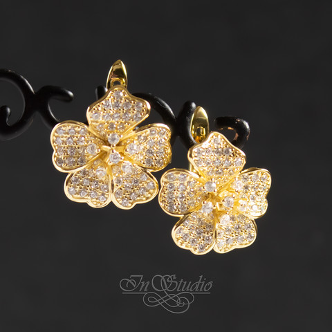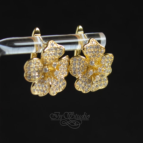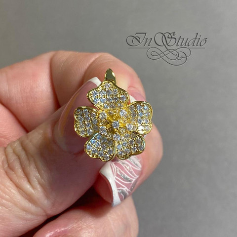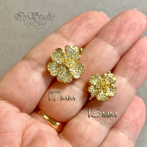 Швензы цветок большой ФЛО 17 мм позолота фианиты