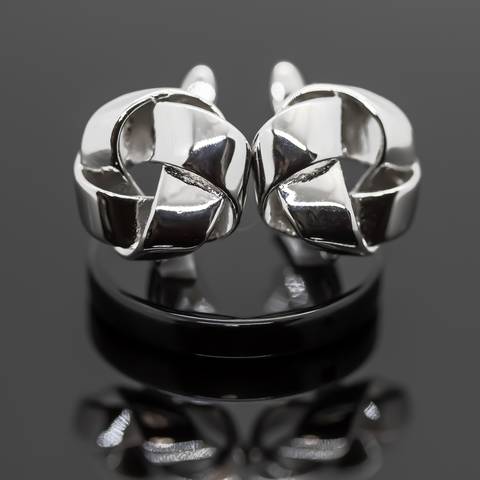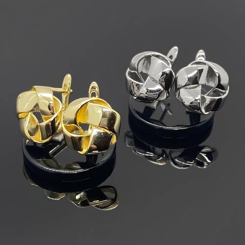 Выполнены в стильных узелков, переплетающихся тонких полосок металла.