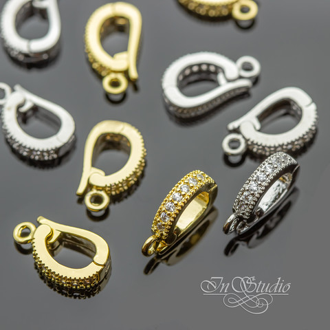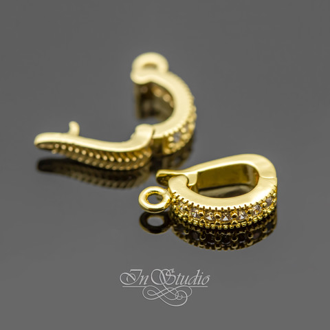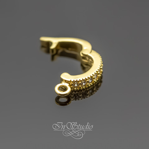 Бейл для украшений 12х2,6 мм позолота с фианитами