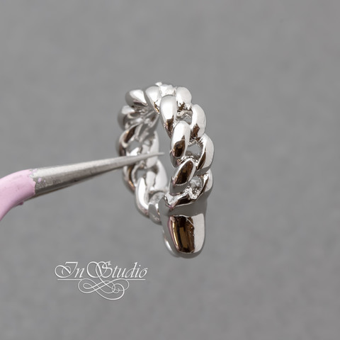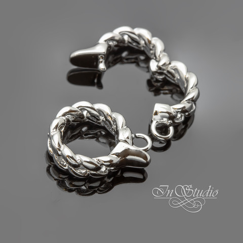 Выполнен в виде цепочки загнутой в кольцо с петелькой.
