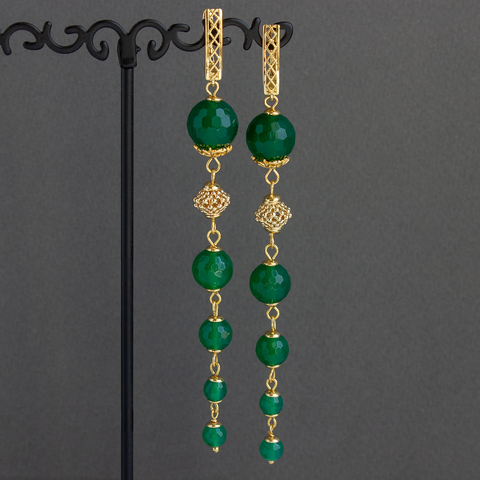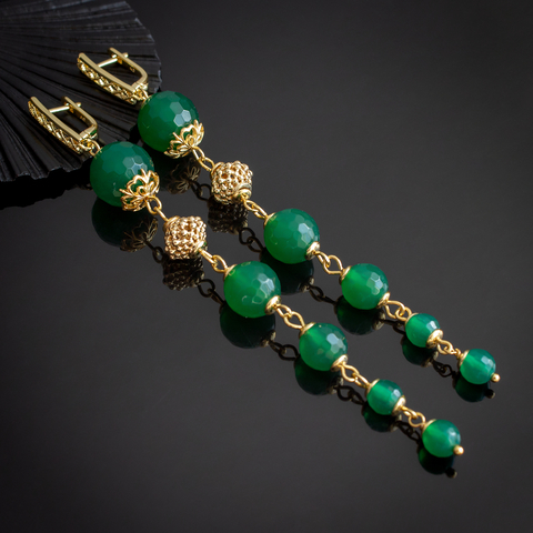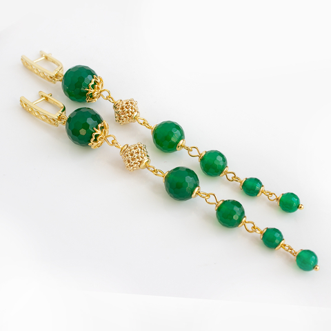 Длинные серьги из натурального хризопраза Сок мяты изумрудно зеленого цвета. Сверкающие и таинственные..