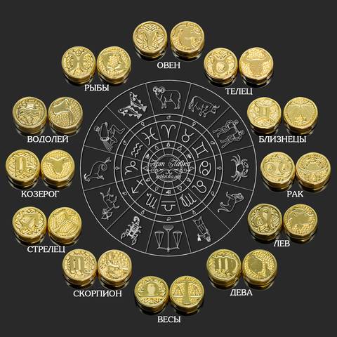 Бусины знак зодиака ВОДОЛЕЙ 10х4 мм позолоченная сталь