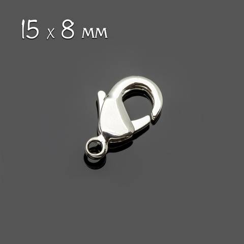 Замочек карабин лобстер 15х8 мм родий