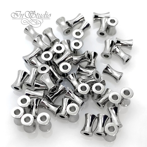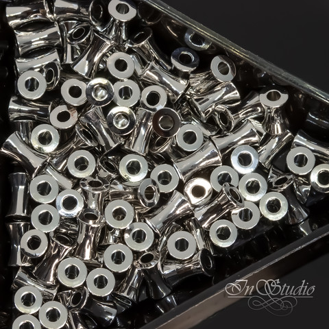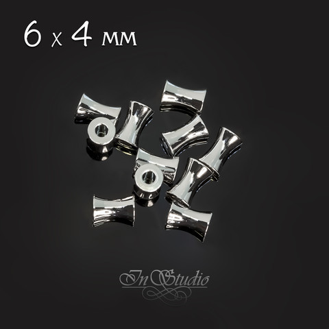 Бусины вогнутые трубочки 6х4 мм спейсеры родий