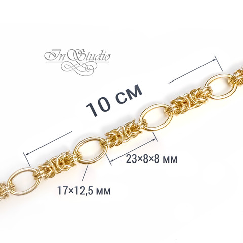 В 10 см - три овальных кольца и три декоративных элемента в византийском плетении.