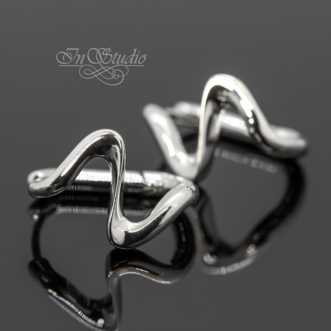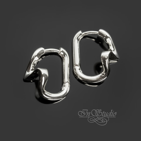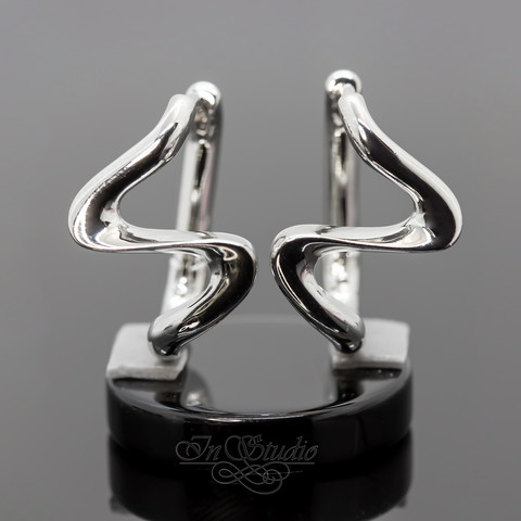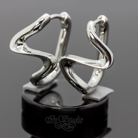 Швензы серьги конго 22х16 мм волна зигзаг родий