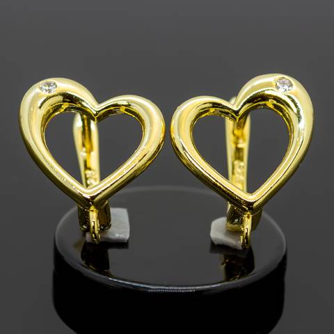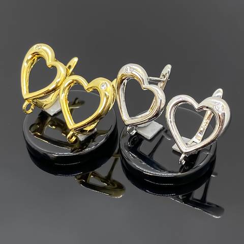 Швензы Сердце с фианитом позолоченные