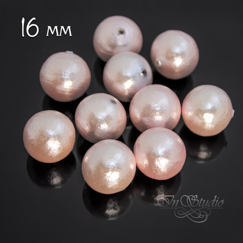 Жемчуг хлопковый полупросверленный САКУРА 16 мм розовый под вклейку