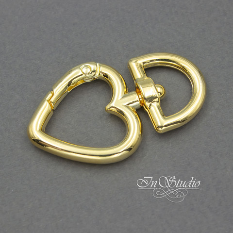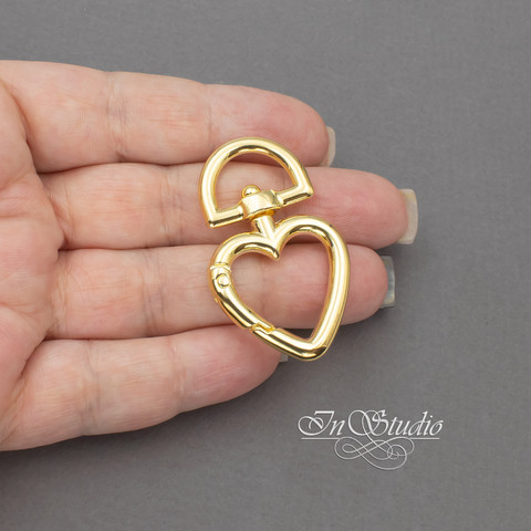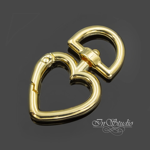 Замок карабин сердце 45х27 мм позолота