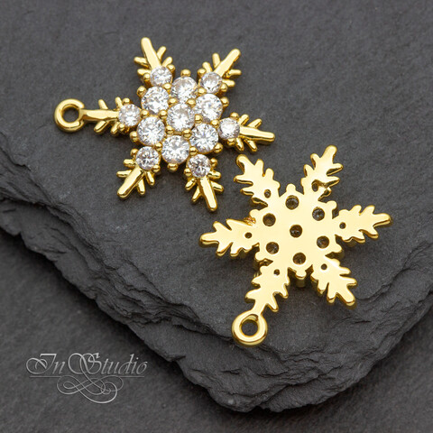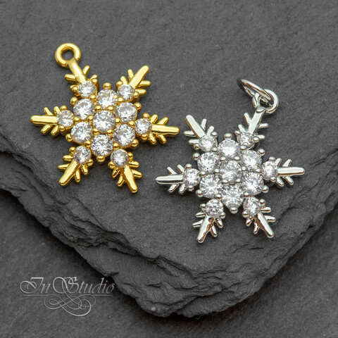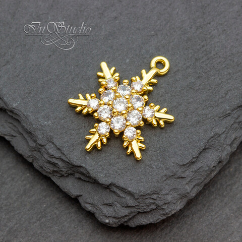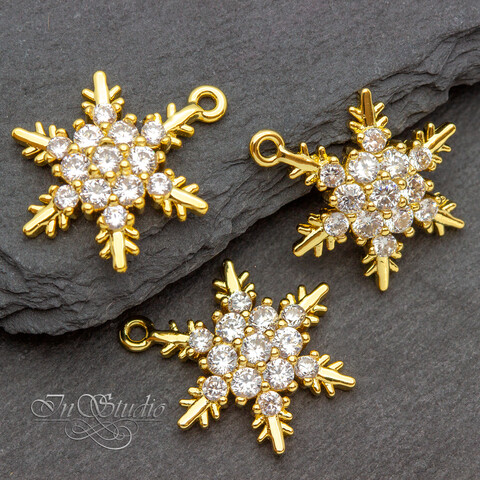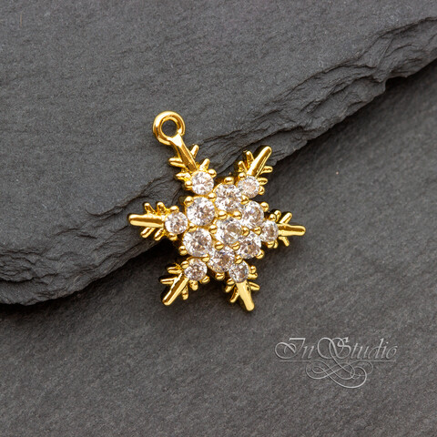 Подвеска Снежинка 17х15мм позолота с инкрустацией фианитами