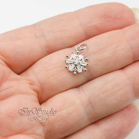 Миниатюрная родированная подвеска Снежинка для создания бижутерии и украшений.