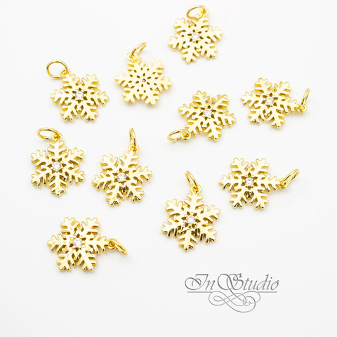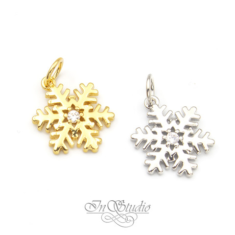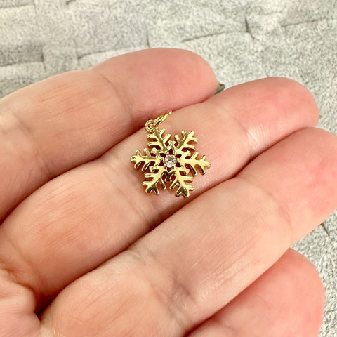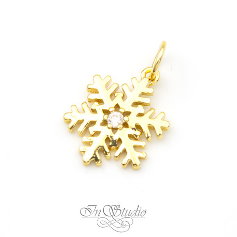 Маленькая позолоченная подвеска 13х11,7 мм Снежинка с фианитом в центре, позолота по латуни.