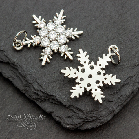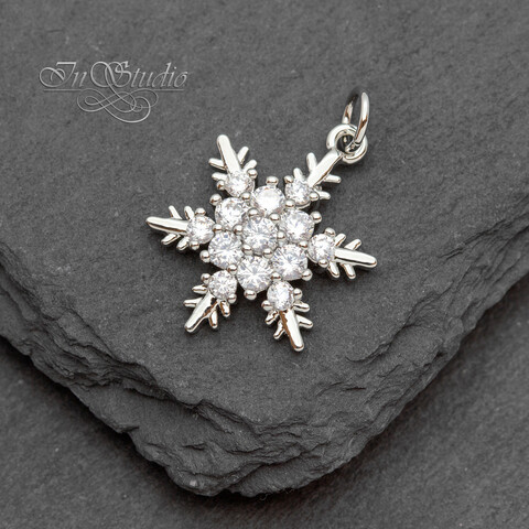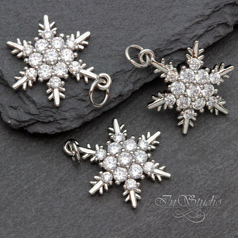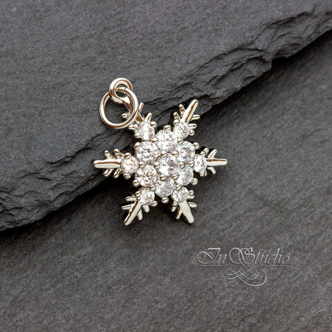 Подвеска снежинка 17х15 мм позолоченная с фианитами