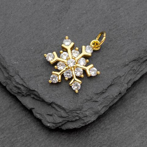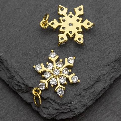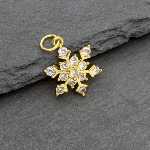 Подвеска снежинка 15х13 мм позолота с фианитами
