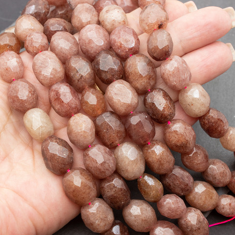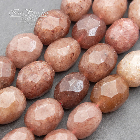 Крупные граненые бусины из натурального природного клубничного кварца.