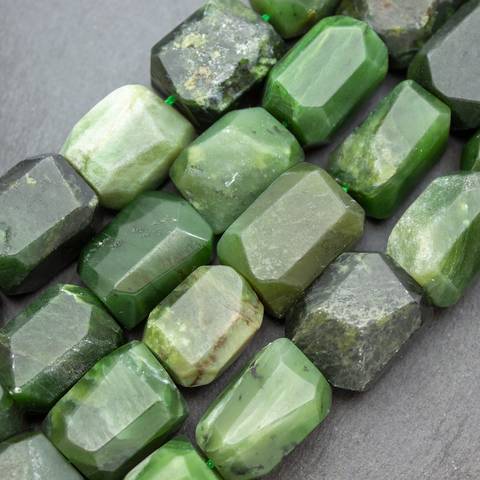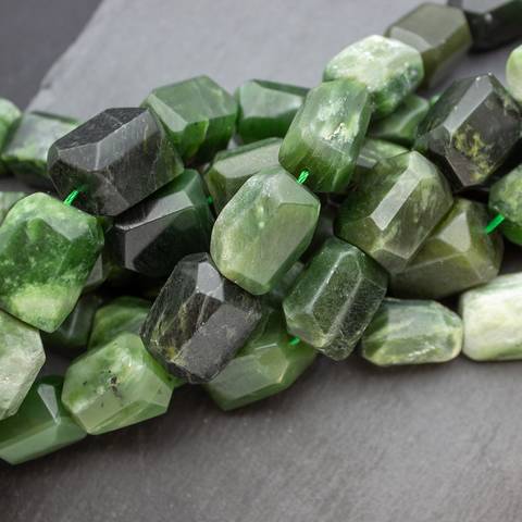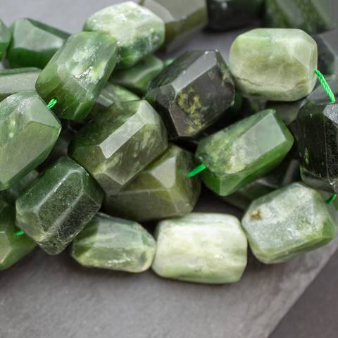 Крупные граненые бусины из натурального природного байкальского нефрита.