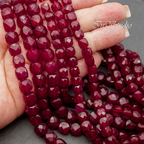 Халцедон рубиновый 6 и 8,5 мм бусины кубики граненые