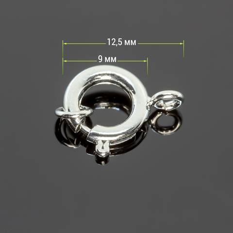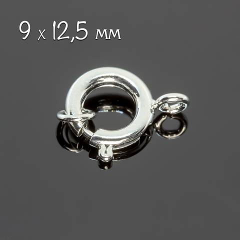 Замок шпрингельный 9х12,5 мм родий для бижутерии