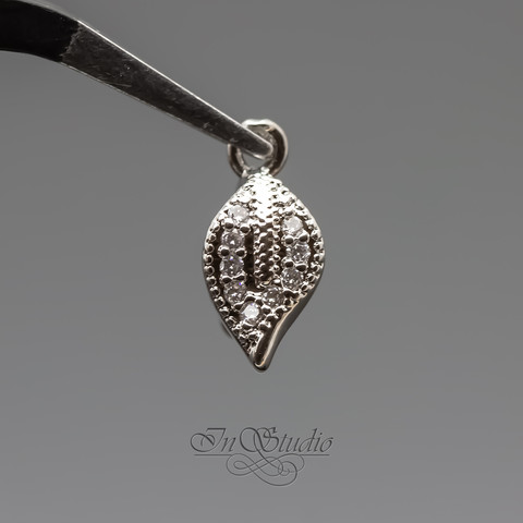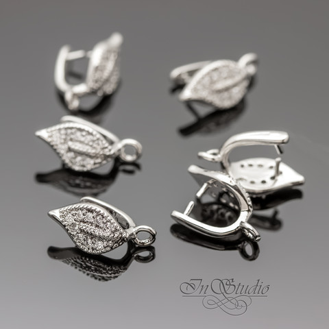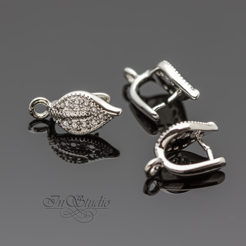 Бейл держатель зажимной для кулона 14х6 мм родий фианиты