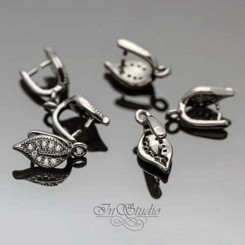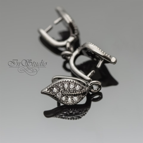 Бейл зажимной для кулона 14х6 мм черный родий фианиты